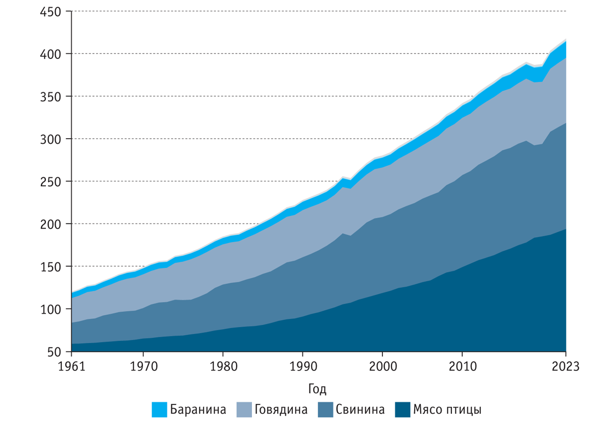 Увеличение численности населения и рост доходов, особенно в странах Азии, Африки и Латинской Америки, подталкивают вверх мировой аппетит к мясу. Урбанизация меняет образ жизни и рацион: с каждым годом все больше потребителей переходят на продукты, богатые животным белком.