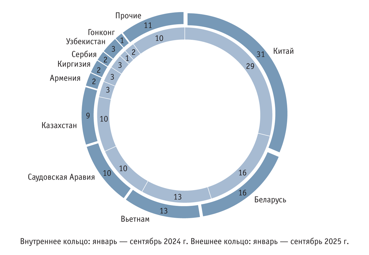 Импорт мяса в Россию в последние годы значительно сократился. За девять месяцев 2025 г. он упал на 6%, при этом отмечены значительные приросты поставок из Китая и Индии — на 31 и 86% соответственно. Импорт из Китая увеличился за счет роста отгрузок мяса птицы, а из Индии — говядины, что говорит о переориентации импортных потоков в страну.