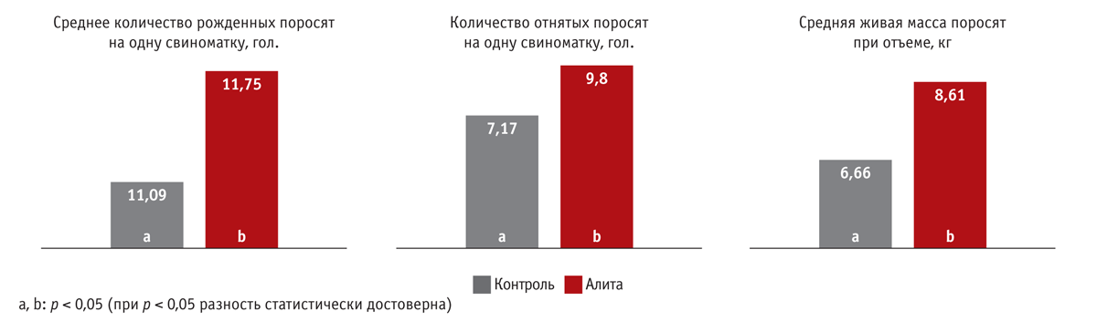 Рис. 2. Результаты применения иммуномодулятора Алита вкормлении поросят (разность статистически достоверна приP<0,05)