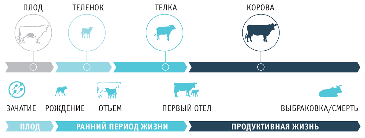 Самый выдающийся генетический потенциал останется на бумаге, если его нечем будет «включить». Кормление — это фундамент, на котором зиждется возможность реализовать все, что заложено в генах. Здесь нет мелочей, особенно важны такие ключевые физиологические этапы в жизни коровы, как выращивание, осеменение и реализация ее генетического потенциала (рисунок).