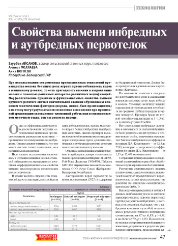 Свойства вымени инбредных и аутбредных первотелок