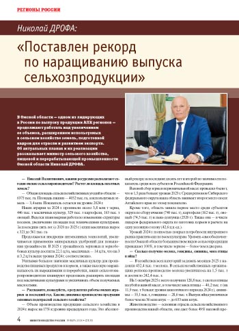 — Спасибо за беседу, Николай Валентинович! Желаем омским сельхозпроизводителям финансовой стабильности, успехов в наращивании производства и развитии предприятий.