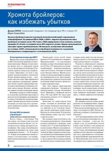 Хромота бройлеров наносит огромный экономический ущерб современным птицефабрикам. По данным FAO и USDA, в 2024 г. мировое производство мяса бройлеров составило около 103,7 млн т. США лидировали в этом сегменте, получая примерно 21,34 млн т и занимая около 20% мирового рынка. Однако производители ежегодно теряют приблизительно 150 млн долл. вследствие заболеваний ног у птицы. В 60% случаев хромота у бройлеров возникает из‑за развития бактериального хондронекроза с остеомиелитом (БХО).