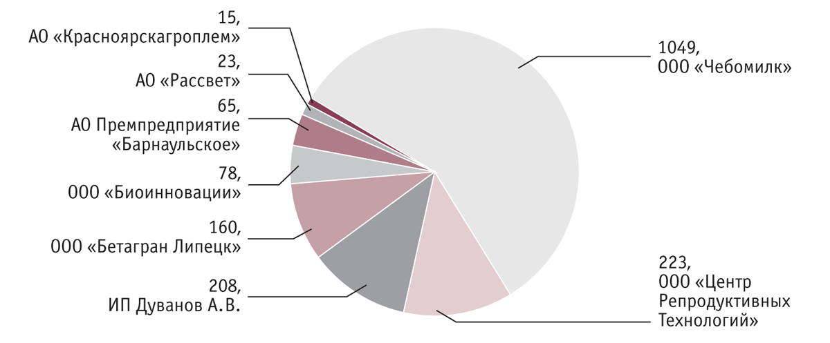 Из восьми лабораторий ТЭ крупного рогатого скота семь извлекали эмбрионы у доноров молочных пород. Производством и ТЭ мясных пород занимались эмбриологи «Центра Репродуктивных Технологий» из Самарской области.