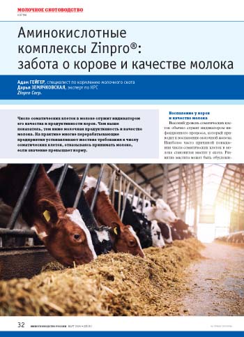 Правильное содержание животных — главный способ защиты от возбудителей мастита, несмотря на их постоянное присутствие на ферме. Ввод в рацион комплексов Performance Trace Minerals® от компании Zinpro Corp., например с цинком, позволяет снизить число и тяжесть случаев мастита, уменьшить количество соматических клеток в молоке и повысить его качество.