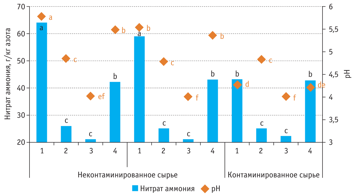 при различных условиях ферментации травяного сырья с низким содержанием нитратов