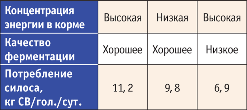 Качество ферментации (количество и состав образовавшихся в процессе брожения продуктов) — важный показатель. При неудовлетворительной ферментации даже из качественного сырья невозможно получить хороший корм и достичь его высокой поедаемости животными (табл. 1).