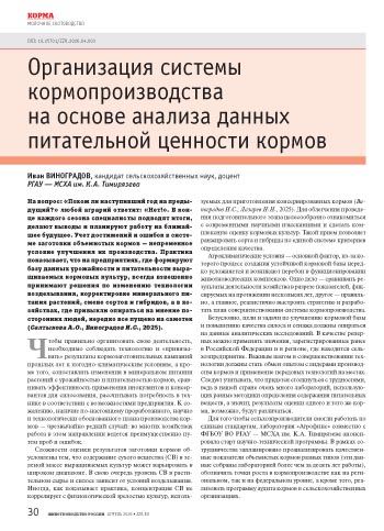 На вопрос: «Похож ли наступивший год на предыдущий?» любой аграрий ответит: «Нет!». В конце каждого сезона специалисты подводят итоги, делают выводы и планируют работу на ближайшее будущее. Учет достижений и ошибок в системе заготовки объемистых кормов — непременное условие улучшения их производства. Практика показывает, что на предприятиях, где формируют базу данных урожайности и питательности выращиваемых кормовых культур, всегда взвешенно принимают решения по изменению технологии возделывания, корректировке минерального питания растений, смене сортов и гибридов, а в хозяйствах, где привыкли опираться на мнение посторонних людей, нередко все пущено на самотек (Салтыкова А.О., Виноградов И.С., 2025).