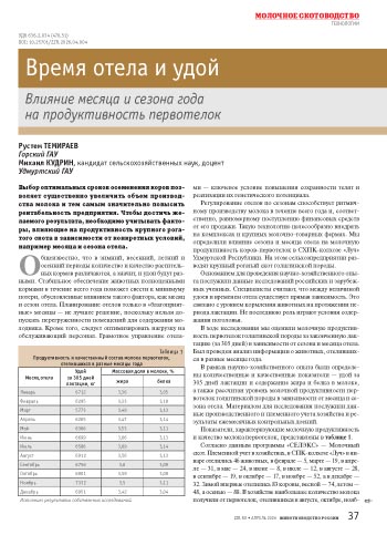 Время отела и удой